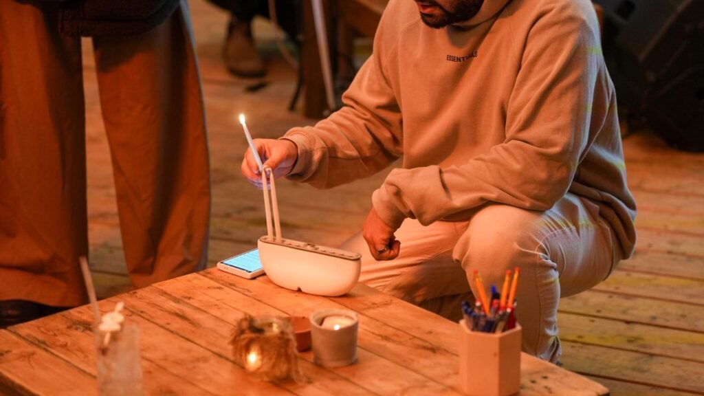 שמענו את סיפור המקום מפי מנהל החווה, הדלקנו יחד נרות חנוכה, ונעם חורב הגיע לעשות שיחה על הסיפורים מאחורי השירים המפורסמים.